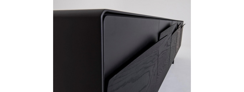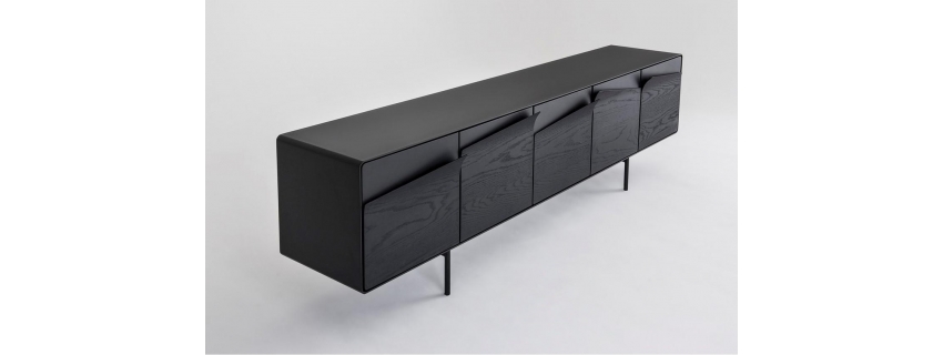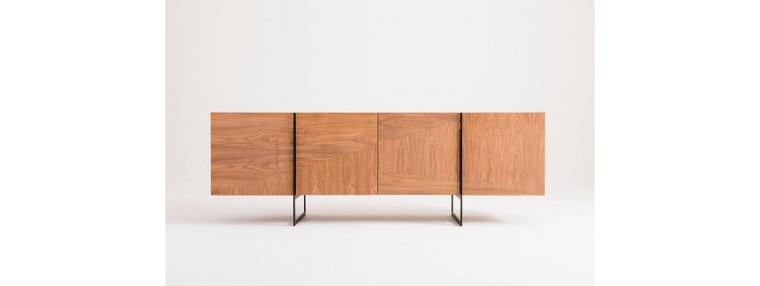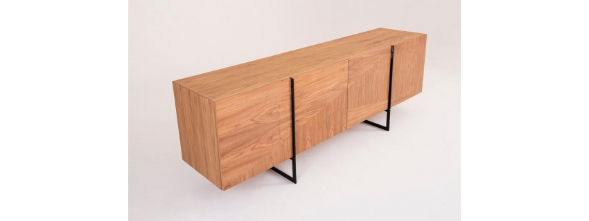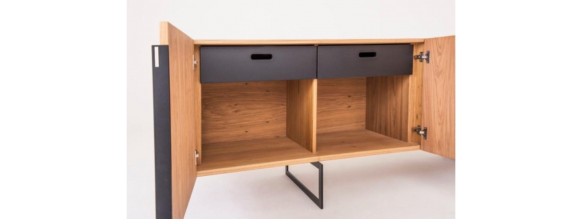 Inspirado na Escola Bauhaus, com estrutura em aço carbono e tampo em laminado ou granito.