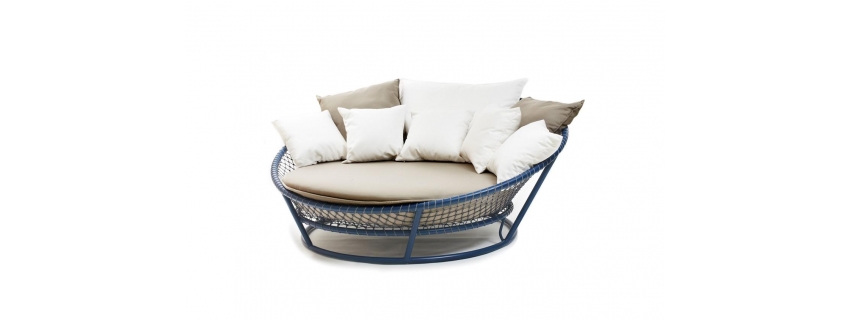 Estrutura em alumínio com pintura eletrostática com acabamento em corda náutica. Assento estofado. Cores à escolha. Produto resistente a intempéries indicado para área externa.