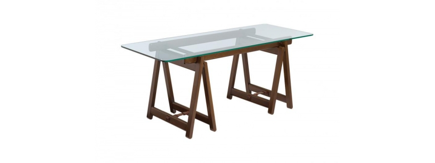 Madeira de lei maciça, tampo em laminado, acabamento em latão maciço e inox.