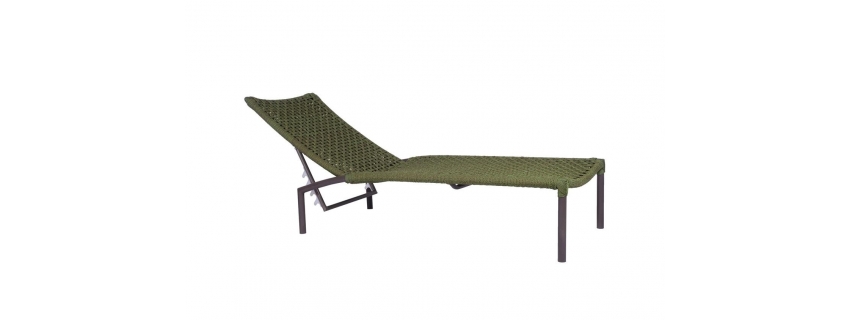 Estofado com sistema air flow com percintas plásticas de polietileno e revestimento interno de couro sintético. Tecidos resistentes a intempéries. Produto indicado para área externa.