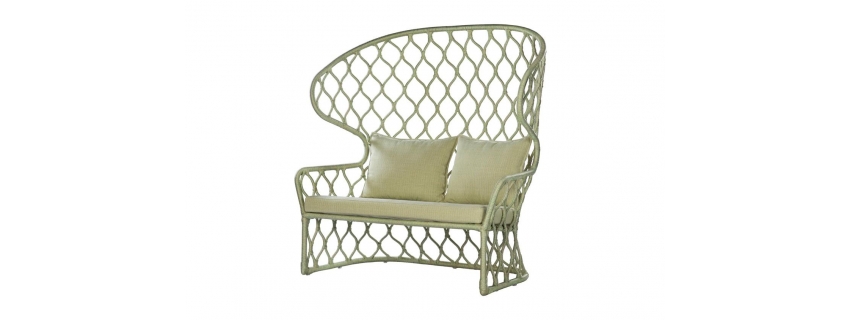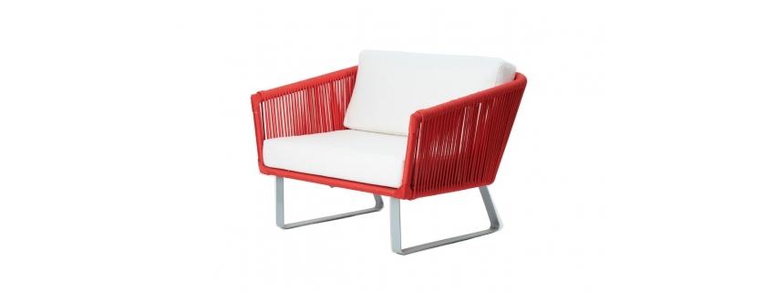 Estrutura em madeira. Encosto em corda náutica ou fibra. Assento estofado. Cores a escolha. Produto resistente a intempéries indicado para área externa.