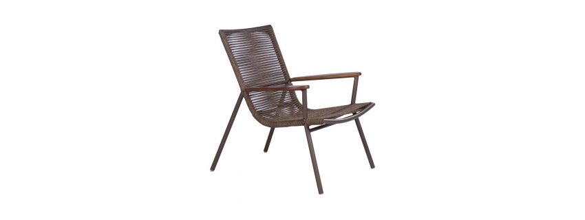 Estrutura em alumínio com pintura eletrostática. Assento em corda náutica trançada. Cores à escolha. Produto resistente a intempéries indicado para área externa.